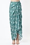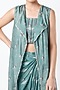 Featuring a coastal blue braided bustier in tussar silk base. It is paired with a matching printed cowl skirt and a flap jacket.