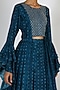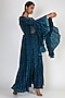 Featuring a dark blue handkerchief kurta in viscose base with zari embroidery. It is paired with matching palazzo pants having bandhani print.