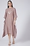 Featuring a lilac kaftan in cotton silk base with digital print and mirror embroidery.