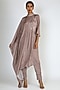 Featuring a lilac one side kaftan kurta in viscose base with floral zari embroidery. It is paired with matching straight pants.