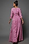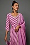 Featuring a purple anarkali in cotton silk base with gota embroidery and leheriya print. It is paired with a matching organza dupatta.