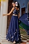 Featuring a dark blue lehenga in organza base. It is paired with a blouse having applique, sequins and beadwork, including an embroidered dupatta. Style it with statement earrings and block heels for festive occasions or weddings.