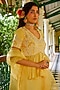 Featuring a dark yellow peplum top in organza base with thread, cutdana and silver zari embroidery. It is paired with sharara pants and a scalloped dupatta. Style it with statement earrings and block heels for festive occasions or weddings.