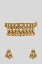 Featuring a gold finish temple choker necklace studded with kundan polki and gold beads, set in brass. It is paired with a matching pair of earrings. This jewellery is perfect for a graceful, sophisticated look, creating a stylish ensemble ideal for weddings, engagement ceremonies or festive gatherings.
