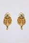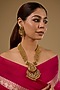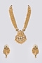 Featuring a gold finish temple pendant necklace studded with gold beads and kundan polki, set in mixed metal. It is paired with a matching pair of earrings. Perfect choice for festive celebrations or other Indian festivities.