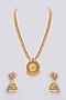 Gold Finish Kundan Polki & Gold Beaded Temple Pendant Necklace Set