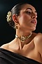 Featuring a gold finish choker necklace studded with kundan polki and green stones, set in mixed metal. It is paired with a matching pair of earrings. Perfect wear for festive occasions or wedding ceremonies.