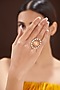 Featuring a gold finish ring studded with kundan polki and peach stone, set in mixed metal.