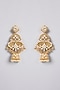 Featuring a pair of gold finish bell-shaped dangler earrings studded with kundan polki and pearls, set in mixed metal. Perfect choice for festive celebrations or other Indian festivities.
