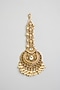 Featuring a gold finish temple maangtikka studded with pearls, oval and pear-shaped kundan polki, set in brass. This jewellery is perfect for a graceful, sophisticated look, creating a stylish ensemble ideal for weddings, engagement ceremonies or festive gatherings.