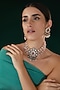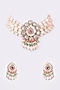 Featuring a gold finish choker necklace studded with kundan polki, red stones and pink beads, set in brass. It is paired with a matching pair of earrings. This beautiful necklace set will add a touch of elegance and complete your regal look for weddings and festive occasions.