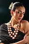 Featuring a gold finish layered necklace studded with kundan polki and red stones, set in mixed metal. It is paired with a matching pair of earrings. Perfect wear for festive occasions or wedding ceremonies.