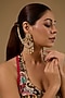 Featuring a pair of gold finish floral chandbali earrings studded with kundan polki and ruby gemstones, set in mixed metal. Perfect choice for festive celebrations or other Indian festivities.