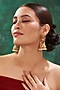 Gold Finish Magenta Stone & Beaded Temple Dangler Earrings