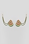 Featuring a pair of gold finish chandelier earrings studded with pink stones, small pearls and green beads, set in brass. This jewellery is perfect for a graceful, sophisticated look, creating a stylish ensemble ideal for weddings, engagement ceremonies or festive gatherings.