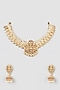 Featuring a gold finish necklace studded with shell pearls, set in mixed metal. It is paired with a matching pair of earrings.