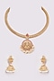 Featuring a two-tone finish temple pendant necklace, set in mixed metal. It is paired with a matching pair of earrings. Perfect wear for weddings, special occasions or small function.