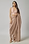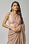 Featuring a baby pink pre-draped saree in net base with an attached petticoat. Accentuate with statement jewellery and heels for a wedding, sangeet or cocktail ceremony.