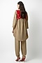 Featuring a beige shirt in crepe base. It is paired with pants and an overlay jacket. Accentuate it with statement earrings and heels for an office or casual wear.