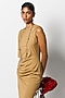 Featuring a beige maxi dress in soft jersey base with a back zipper and gathered detail. Accentuate it with statement earrings and stilettos for evening wear or cocktail party.