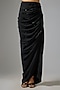 Featuring a black draped skirt in japanese crepe base with side opening and broad waistband. Team with a sequin top and stilettos, great for parties or evening outings.