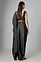 Featuring a black saree in silk base. Style it with a blouse, statement jewellery and heels for a complete look.