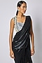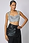 Featuring a black and white blouse in silk base. Accentuate it with a saree, dangler earrings and heels for festive look.