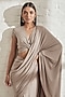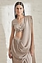Featuring a champagne tie-up top in shimmer jersey base with cap sleeves. Accentuate it with pants, stud earrings and heels in casual or evening wear.