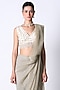 Featuring a champagne blouse in silk base. Accentuate it with a saree, statement earrings and heels for a wedding ceremony.