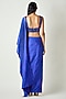 431-88 by Shweta Kapur presents an electric blue blouse in satin silk base with a deep v-neckline, curved hemline, nalki and beads hand embroidery in a floral pattern. Style it with a saree, a sling bag and heels for a cocktail, sangeet or engagement ceremonies.