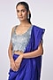Featuring an electric blue pre-draped godet saree in silk base with cutwork, laser-cut detailing and butil-in underskirt. Accentuate it with a blouse, statement jewellery and heels for an ethereal look, perfect for festive soirees or cocktail parties.