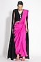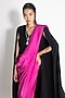 Featuring a fuchsia pre-draped saree in japanese crepe and silk base with a built in petticoat. It is paired with a black cape top having long sleeves. Accentuate it with statement jewellery or heels for a cocktail party or sangeet ceremony.