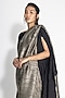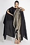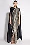Featuring a gold saree in pleated metallic and silk base with a built in petticoat. It is paired with a contrasting black cape. Accentuate it with statement jewellery and heels for a cocktail, sangeet or engagement ceremonies.