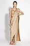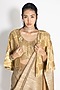 Featuring a gold crossover top in cotton base. Accentuate it with pants, stud earrings and heels in casual or evening wear.