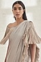Grey Pre-Pleated Saree With Grey Off-Shoulder Fringe Top