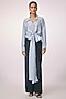 Featuring an ice blue wrap shirt in dupion base with an embroidered collar. Accentuate it with leather pants or sequins skirt, statement earrings and block heels for a contemporary look, perfect wear for cocktail parties or night outs.