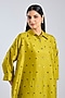 Featuring a kelly green shirt in silk base with sequins hand embroidery. Style it with stud earrings, flats, pants and a sling bag for evening soirees or a casual look.