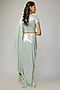 Featuring a mint saree in liquid jersey base. Accentuate it with a blouse, statement jewellery and heels for festive wear.