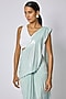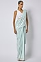 Featuring a mint draped saree in metallic jersey base. Accentuate it with a blouse, dangler earrings and heels for festive occasion or family gatherings.