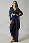 Featuring a navy pre-draped saree in shimmer jersey base. Accentuate with statement jewellery and heels for a wedding, sangeet or cocktail ceremony.