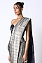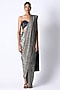 Featuring a navy blue corset blouse in silk and pleated metallic base with sequins detailing at front and back. Accentuate with a silk saree, zircon earrings and metallic heels, perfect for a cocktail, sangeet or reception ceremony.