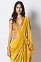 Featuring an ochre yellow blouse in silk base with a deep V-neckline, bead, sequins and nalki hand embroidery. Accentuate it with a saree, dangler earrings and heels for haldi ceremonies.