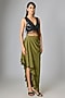 Olive Micropoly Asymmetric Midi Skirt