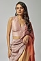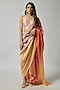 Featuring an ombre peach pre-draped saree in silk base with an attached petticoat. Accentuate with statement jewellery and heels for a wedding, sangeet or cocktail ceremony.