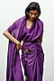Featuring a purple pre-draped saree in silk base with print. Accentuate it with a blouse, statement earrings and heels for sangeet soirees or cocktails parties.