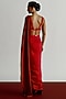 Featuring red pre-draped saree in dupion base. Accentuate it with a corset blouse, chunky zircon earrings, heels and a clutch, perfect for a high-fashion events, award show, or a cocktail events.