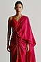 Featuring red pre-stitched saree in dupion base with print and side zip detail. Accentuate it with a corset blouse, chunky zircon earrings, heels and a clutch, perfect for a high-fashion events, award show, or a cocktail events.
