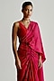 Featuring a red blouse in dupion base with a V-neckline. Accentuate it with a satin draped saree, zircon jewellery, heels and a clutch for a sangeet, award shows or cocktail soiree.