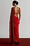 Featuring a red blouse in dupion base with a deep V-neckline and an elasticated underband for comfort and support. Accentuate it with a satin draped saree, zircon jewellery, heels and a clutch for a sangeet, award shows or cocktail soiree.