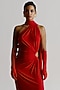Featuring red pre-stitched saree in korean jersey base with a ruched, keyhole and side seam detail. Accentuate it with a corset blouse, chunky zircon earrings, heels and a clutch, perfect for a high-fashion events, award show, or a cocktail events.